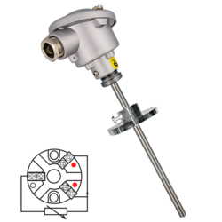 Sonda de temperatura PT100 (RTD) cabezal con conexión eléctrica sencilla y brida desplazable