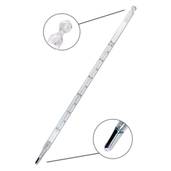 La escala de temperatura se imprime en una placa de opal en el interior del termómetro de modo que es totalmente resistente a los ácidos y los álcalis.