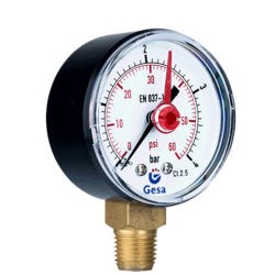 This pneumatic pressure gauge for compressed air is ideal for hydraulic compressors, compressed air systems, pneumatic systems, and low-viscosity fluids that do not corrode copper alloys.