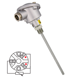 Capteur de température PT100 (RTD) avec la tête avec connexion électrique et tige en acier inox AISI 316.