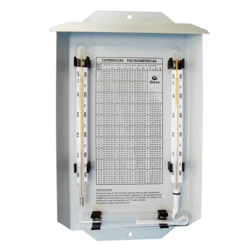 Pour l'humidité relative, la tension de vapeur et les points de rosée sont déterminées à l'aide d'un psychromètre. Ce dispositif est constitué d'un ensemble de deux thermomètres égales: l'un d'eux, appelé "thermomètre sec", qui sert simplement pour obtenir la température de l'air, et l'autre, appelé "thermomètre humide", qui dispose d'un réservoir recouvert d'une humide mousseline et un réservoir d'eau distillée relié par l'intermédiaire d'une mèche.