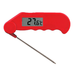 O termômetro digital Gourmet com sonda dobrável é à prova d’água, fácil de usar e perfeito para monitorar temperaturas de cozimento, resfriamento e manutenção de alimentos em processos HACCP. Ele mede temperaturas de -39,9 a 149,9°C com uma sonda de aço inoxidável (Ø3,5 x 110 mm) que se dobra 180° para dentro do dispositivo, facilitando o transporte seguro.