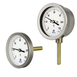 Los termómetros de calefacción D03 con tira bimetálica y caja de acero cincado son instrumentos económicos diseñados específicamente para sistemas de calefacción y refrigeración. Cumplen con la norma EN 13190 y cuentan con una entrada del tubo capilar en la caja radial o posterior. Fabricados con una caja de acero cincado y elementos internos en aleación de cobre, ofrecen resistencia y fiabilidad en entornos exigentes. Su grado de protección IP56 garantiza durabilidad frente a condiciones adversas, mientras que la tira bimetálica como elemento sensor proporciona mediciones precisas en la escala Celsius.