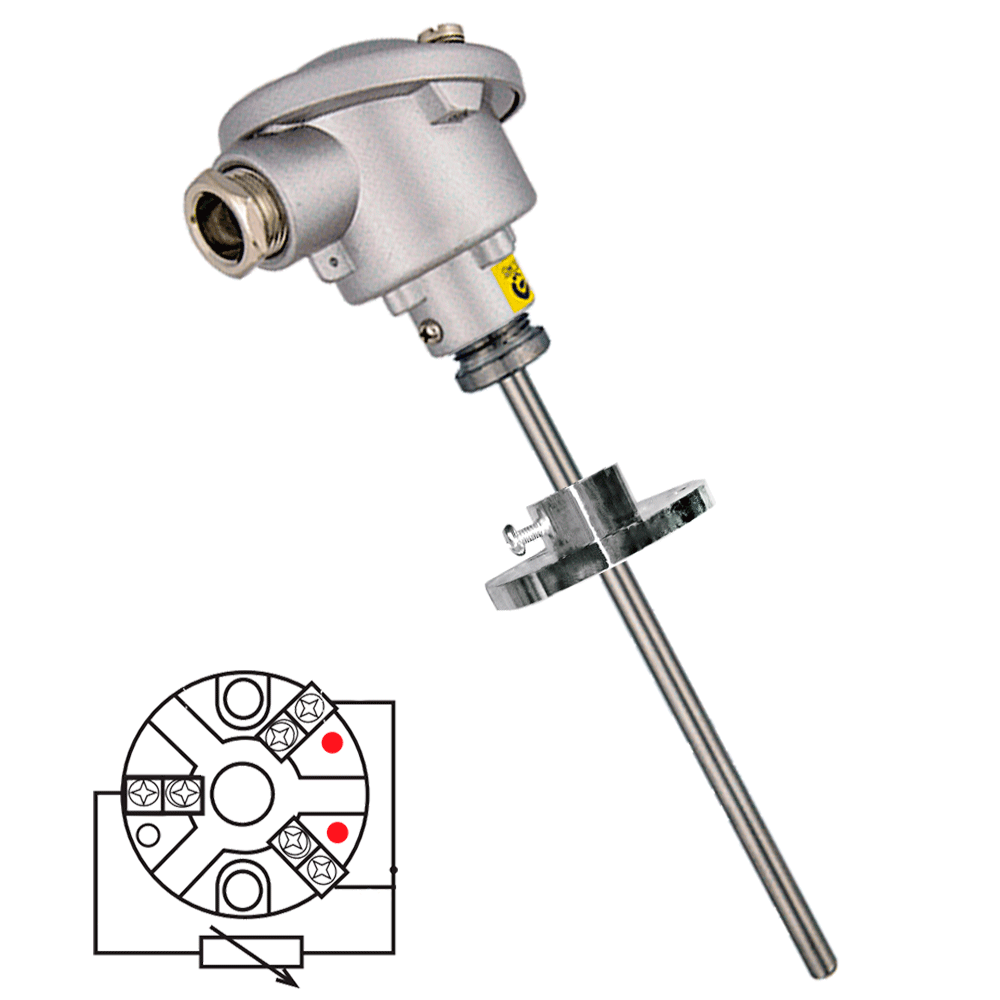 Sonda de temperatura PT100 (RTD) cabezal con conexión eléctrica sencilla y brida desplazable
