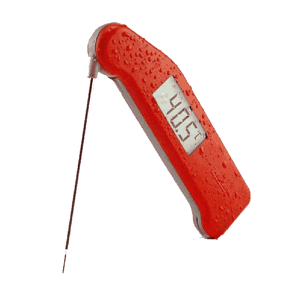 - Retroiluminado y Pantalla Rotatoria (Thermapen Profesional): Respuesta en 1 segundo, precisión de ±0,3 °C (-19,9 a 119,9 °C), impermeable (IP67), pantalla rotatoria.