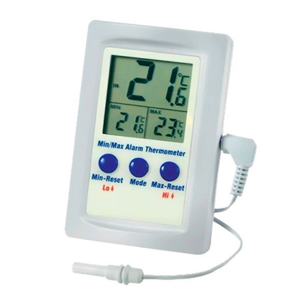 Termómetro digital de ambiente con máximo, mínimo y alarma