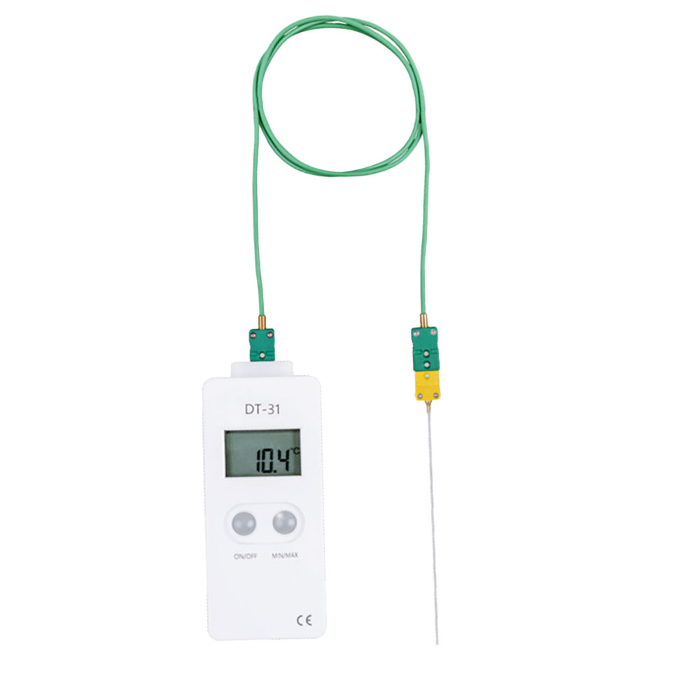 Das DT-31 Thermometer ist mit verschiedenen Sonden kombinierbar, sein großer Temperaturbereich reicht von -200°C bis 1400°C mit einer Auflösung von >0,1°C von -200 bis 1000°C und 1°C für andere Bereiche. Die Präzision ist abhängig von der verwendeten Sonde.