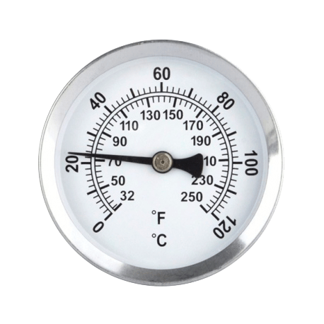 Heizkörperthermometer oder Rohrthermometer: Dieses Zeigerthermometer mit Ø 50 mm verfügt über einen Magneten zur Montage auf Eisenmetallen und zeigt die Temperatur in einem Bereich von 0 bis 120 ° C oder 32 bis 250°F an.
