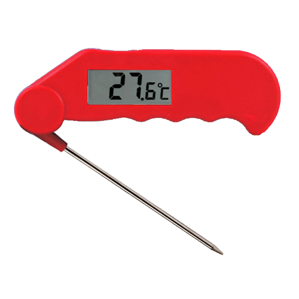 O termômetro digital Gourmet com sonda dobrável é à prova d’água, fácil de usar e perfeito para monitorar temperaturas de cozimento, resfriamento e manutenção de alimentos em processos HACCP. Ele mede temperaturas de -39,9 a 149,9°C com uma sonda de aço inoxidável (Ø3,5 x 110 mm) que se dobra 180° para dentro do dispositivo, facilitando o transporte seguro.